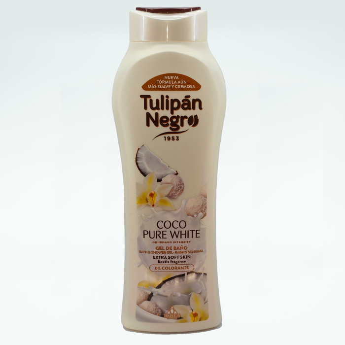 Tulipan Negro Coco Pure White – Gel de duș este formulat pentru igiena zilnică a pielii, având o textură cremoasă și o spumă bogată, ușor de clătit. Curăță eficient fără a usca pielea, menținând senzația de confort după fiecare utilizare.